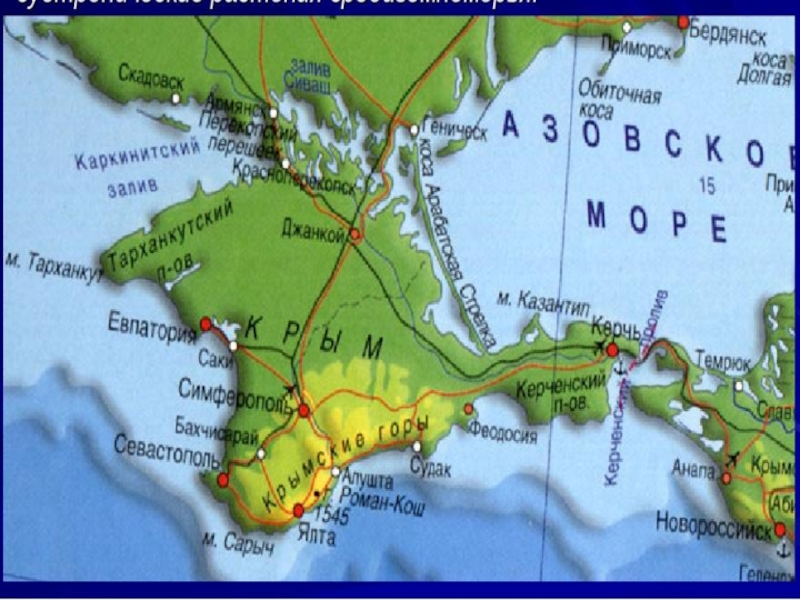 Слайд 2КРЫМСКИЙ ПОЛУОСТРОВ ОМЫВАЕТСЯ ДВУМЯ ТЁПЛЫМИ МОРЯМИ
