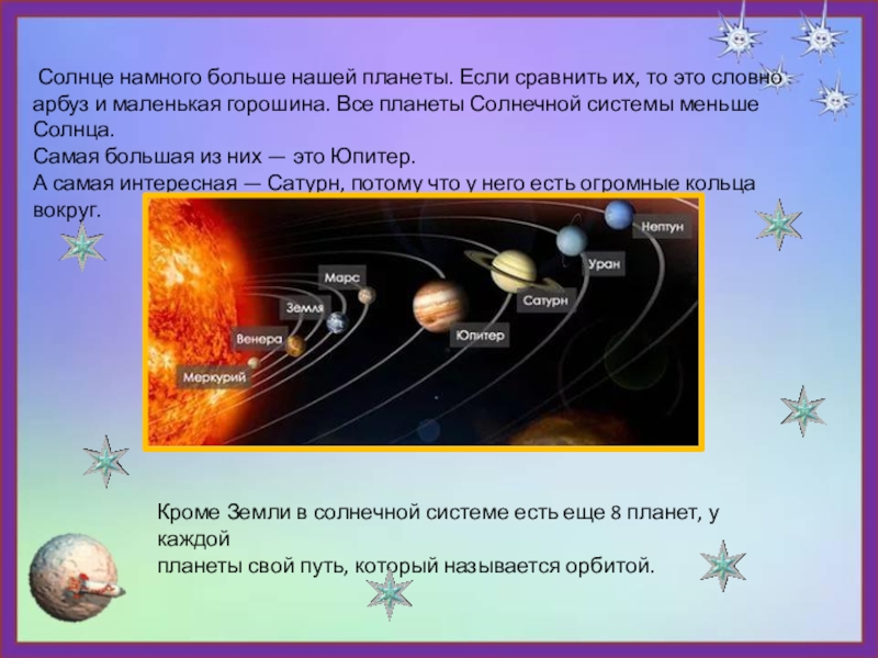 Кроме Земли в солнечной системе есть еще 8 планет, у каждой