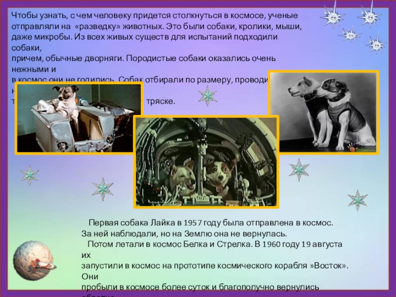 Первая собака Лайка в 1957 году была отправлена в космос.