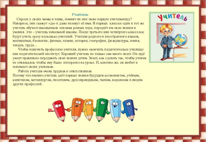 Знает детские стихи, рассказывает сказки, играет и гуляет с детьми… воспитатель.