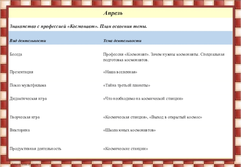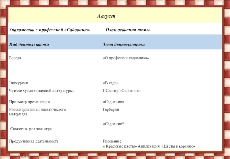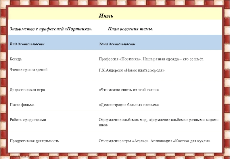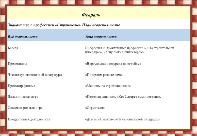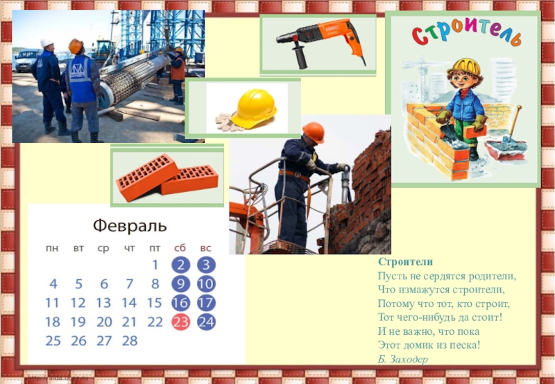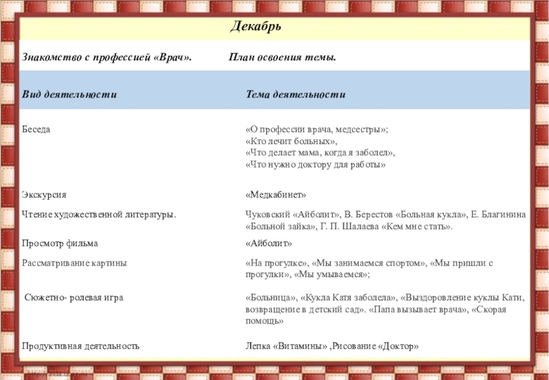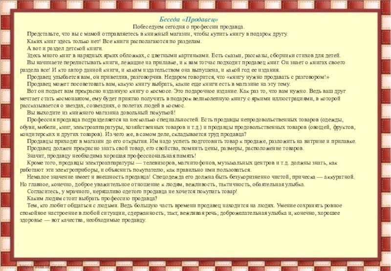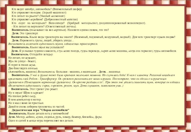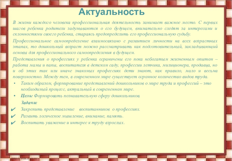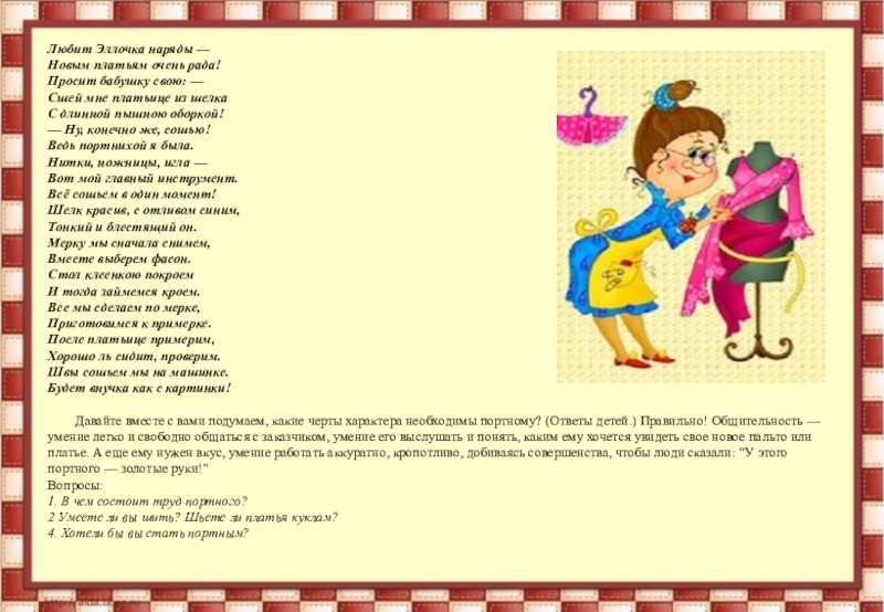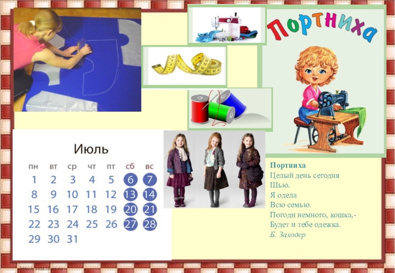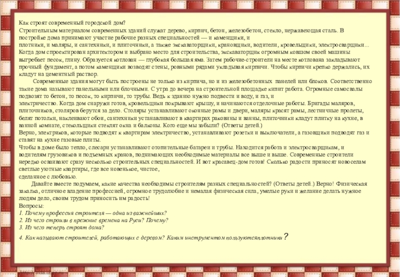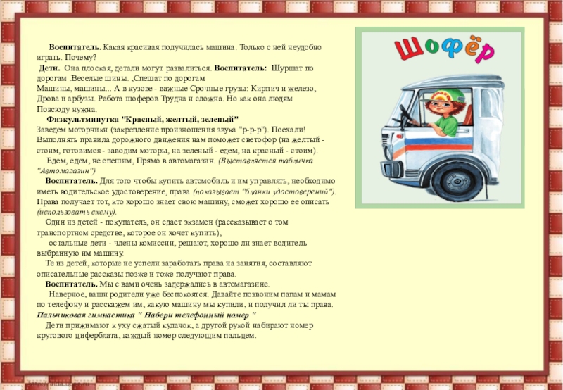 Цель: упражнять детей в умении определять название профессии по названиям действий.