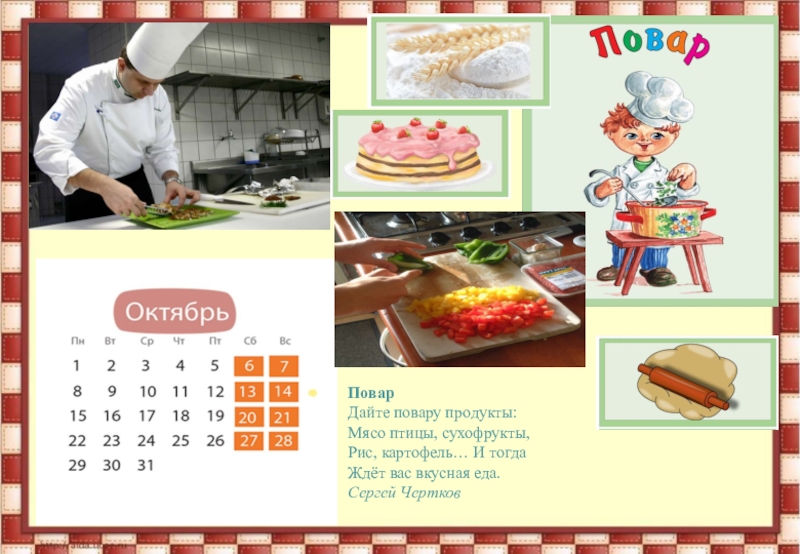 повар – в кухне, столовой, ресторане, кафе… и т.д.