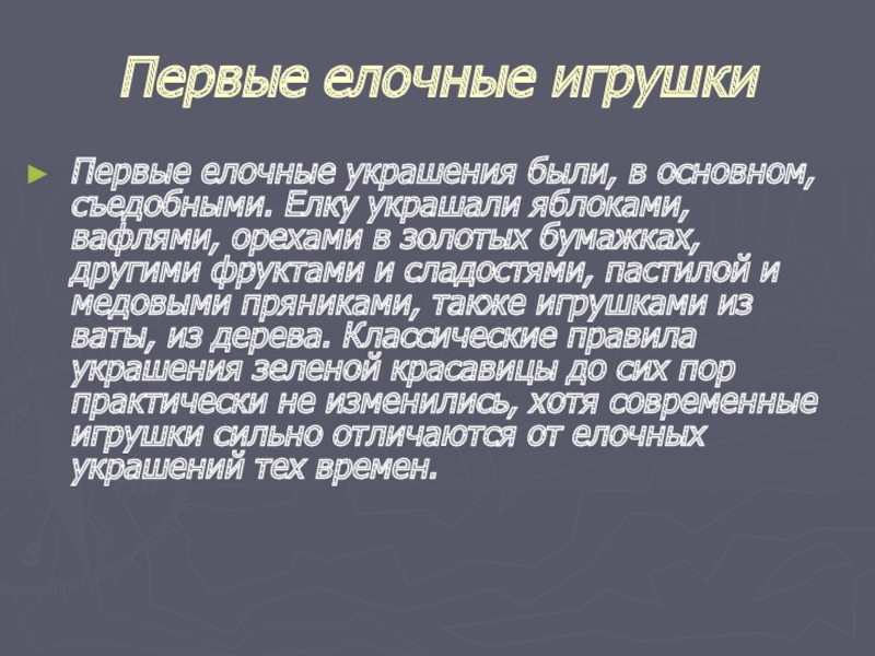 Слайд 4Первые елочные игрушки