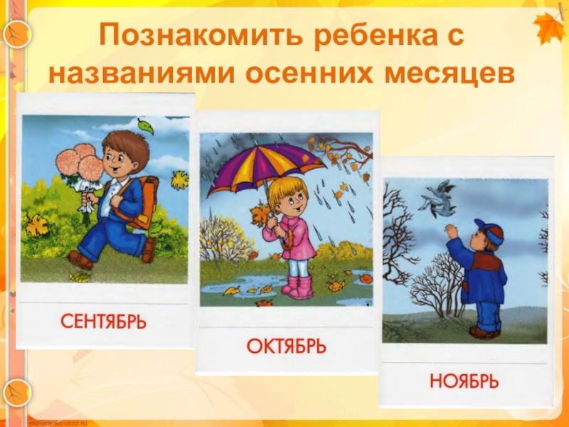 Слайд 5Познакомить ребенка с названиями осенних месяцев