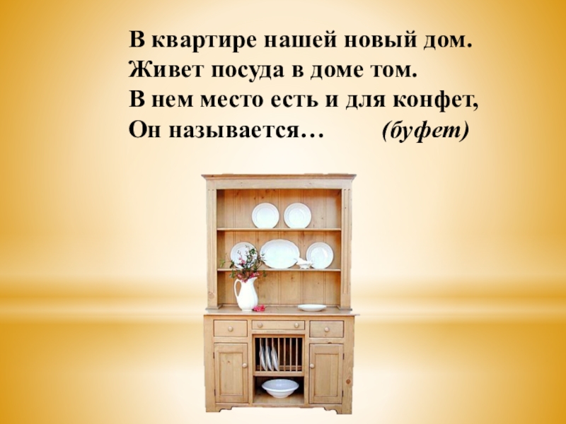 В квартире нашей новый дом.Живет посуда в доме том.В нем место есть и для конфет,Он называется…