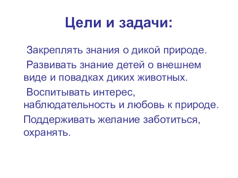 Закреплять знания о дикой природе.