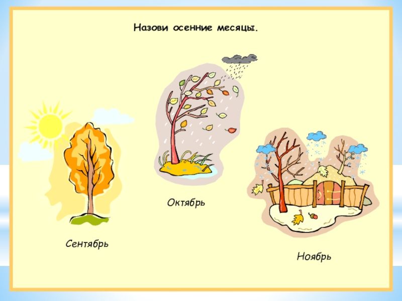 Назови осенние месяцы.СентябрьНоябрьОктябрь