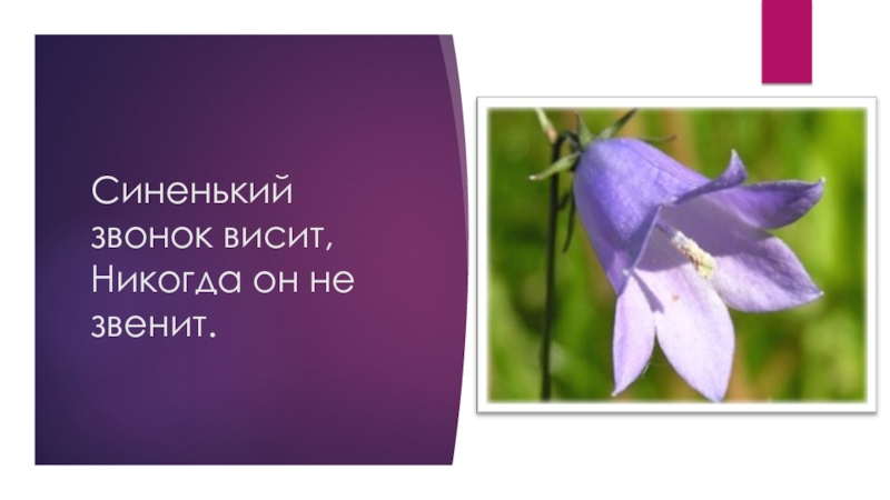 Слайд 4Синенький звонок висит, Никогда он не звенит.