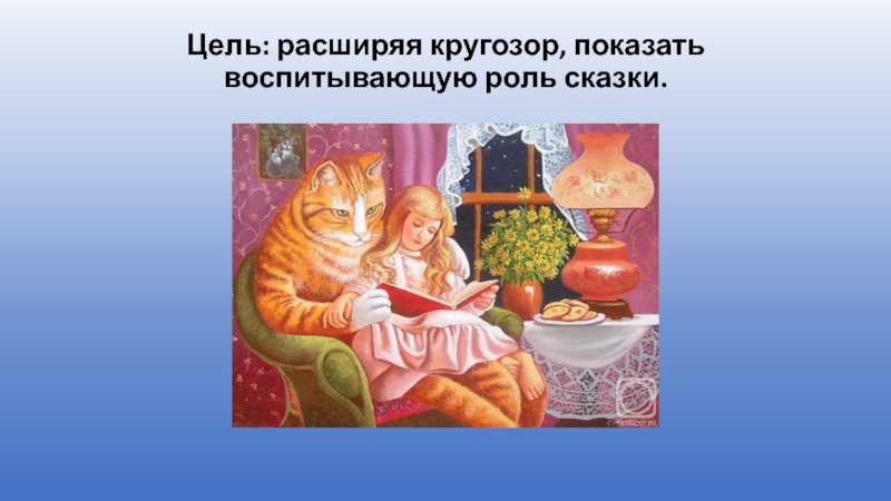 Слайд 2Цель: расширяя кругозор, показать воспитывающую роль сказки.