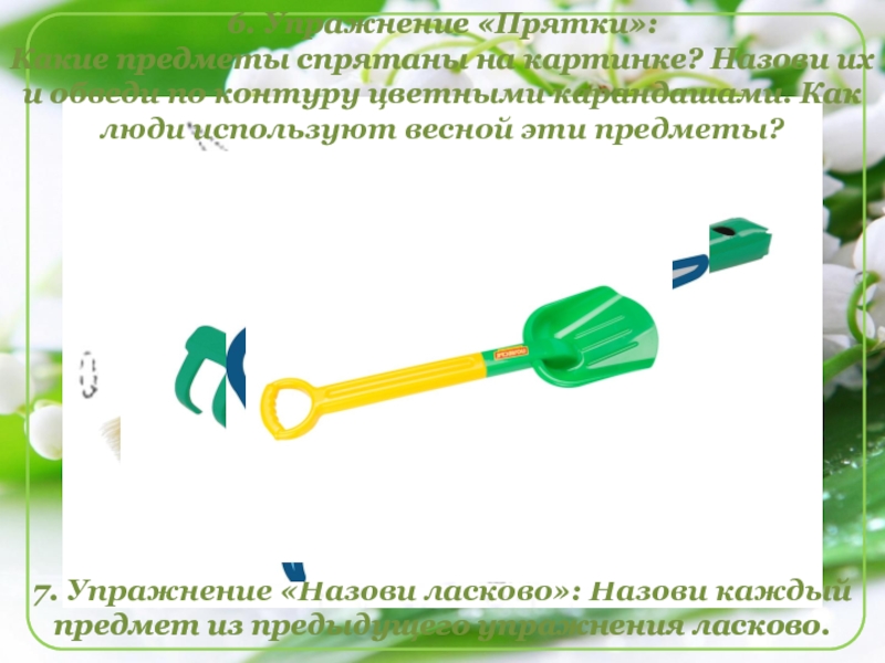 7. Упражнение «Назови ласково»: Назови каждый предмет из предыдущего упражнения ласково.