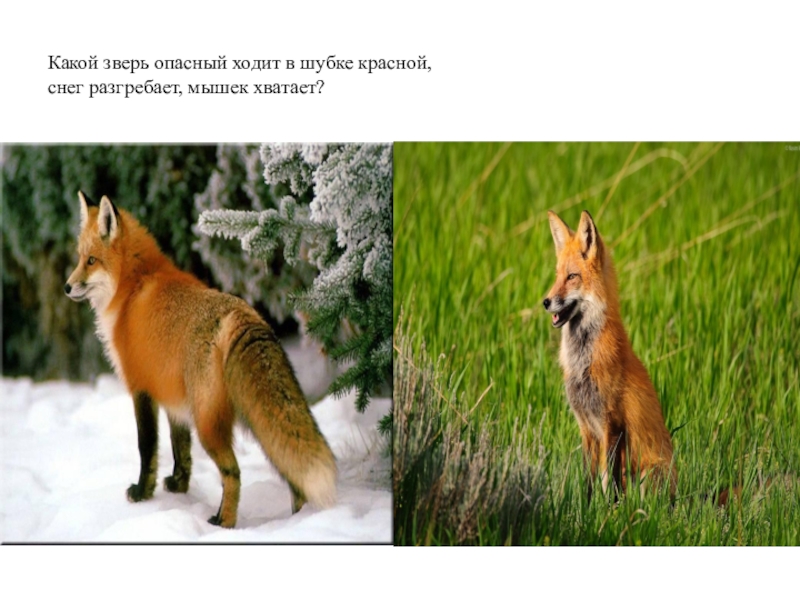 Слайд 4Какой зверь опасный ходит в шубке красной, снег разгребает, мышек хватает?
