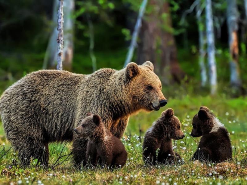 Он в берлоге спит зимой под большущею сосной. А когда придет весна, пробуждается от сна