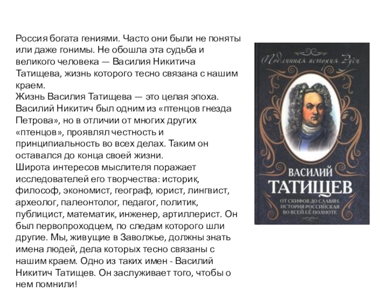 Презентация, доклад по ознакомлению с окружающим миром Татищев В.Н.