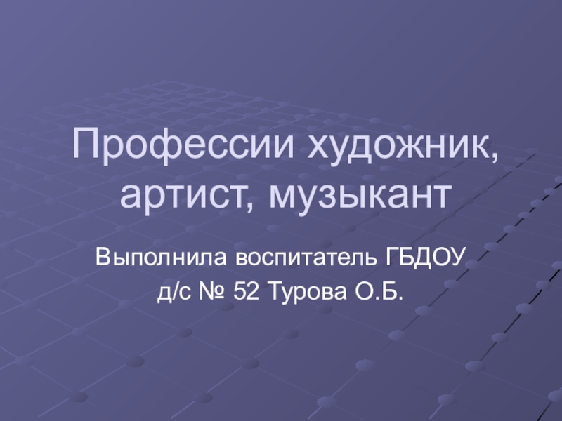 Профессии художник, артист, музыкантВыполнила воспитатель ГБДОУ д/c № 52 Турова О.Б.