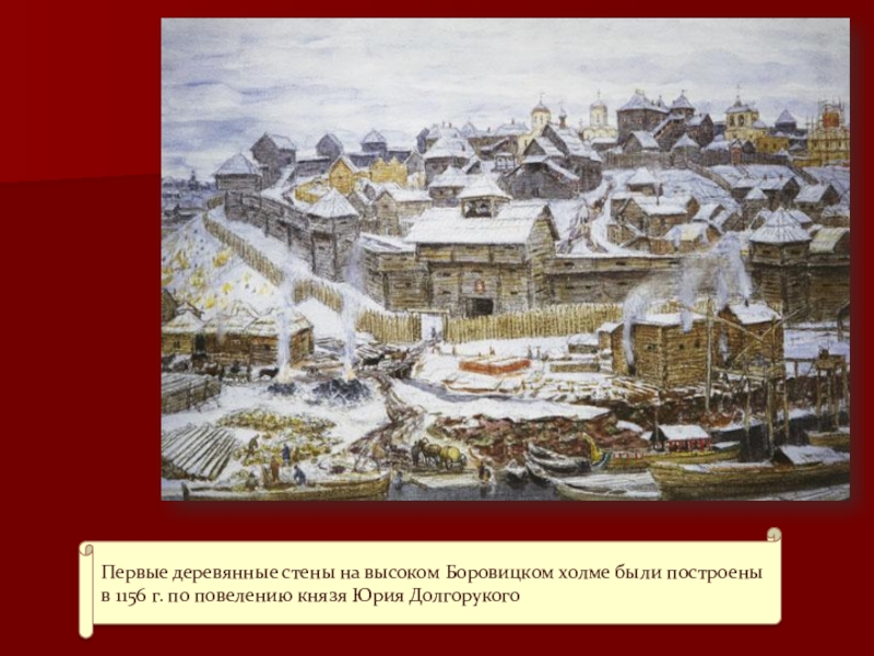 Слайд 3Первые деревянные стены на высоком Боровицком холме были построены в 1156