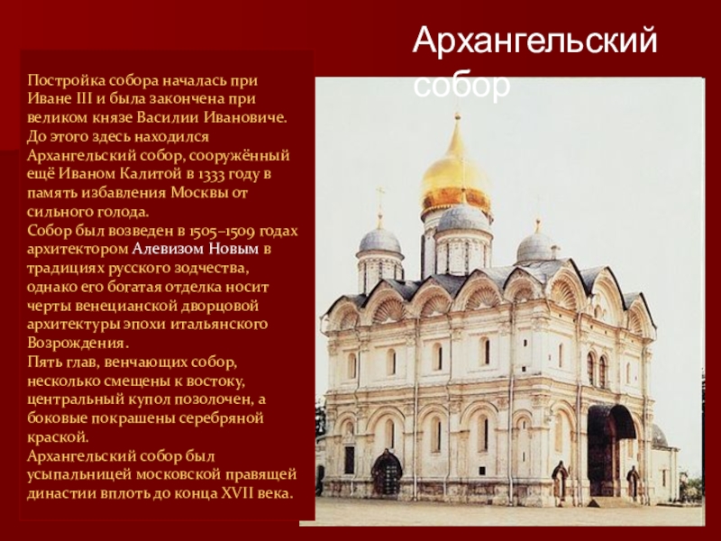 Слайд 31Построена в 1487 — 1491 году по указу Ивана III итальянскими