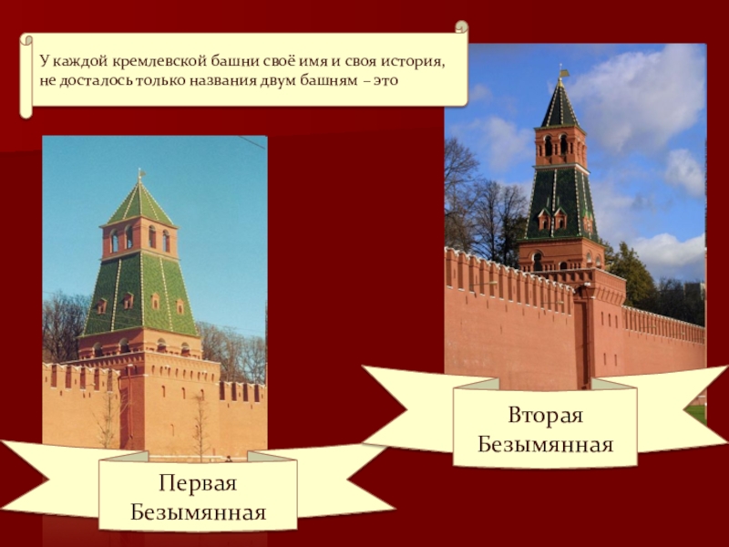 Слайд 10У каждой кремлевской башни своё имя и своя история,