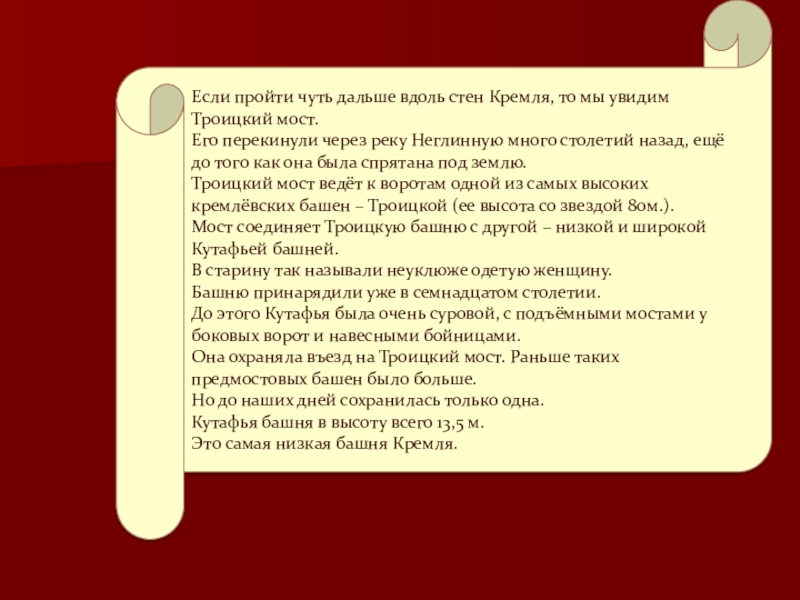 Слайд 23Если пройти чуть дальше вдоль стен Кремля, то мы увидим Троицкий