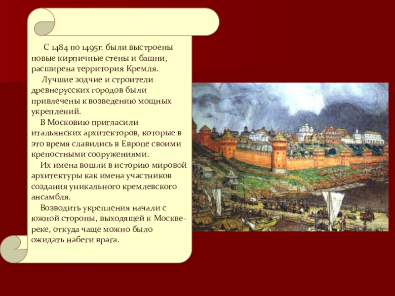 В Московию пригласили итальянских архитекторов, которые в это время славились в Европе своими крепостными сооружениями.