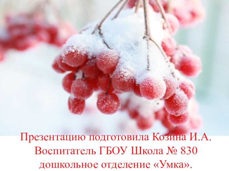 Слайд 2Презентацию подготовила Козина И.А. Воспитатель ГБОУ Школа № 830 дошкольное отделение «Умка».