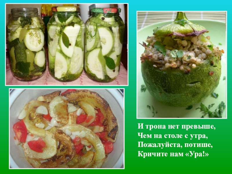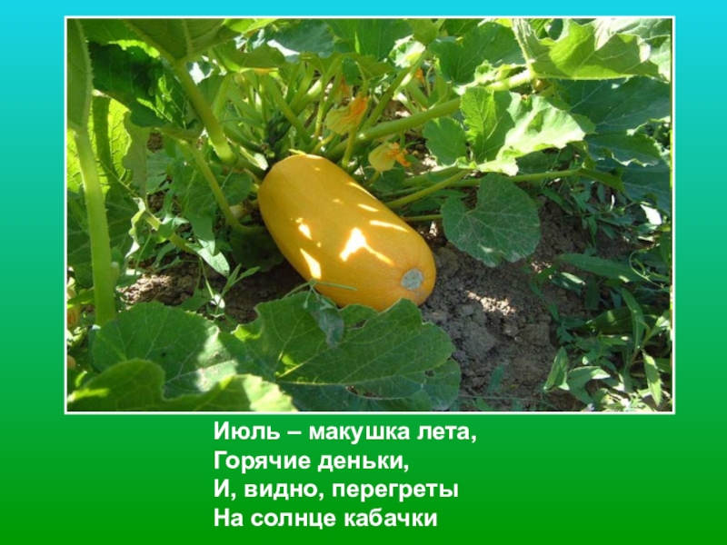 Июль – макушка лета,  Горячие деньки,  И, видно, перегреты  На солнце кабачки