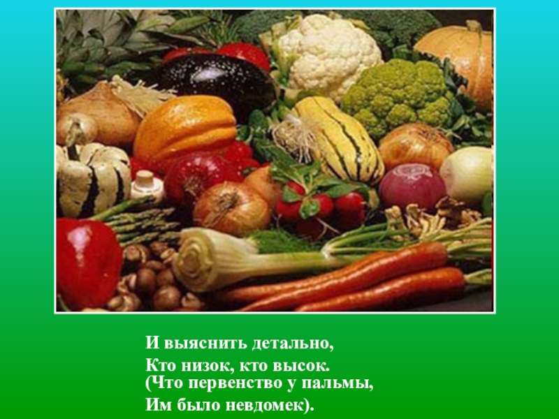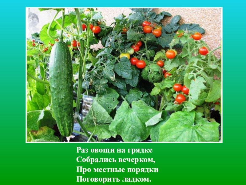 Слайд 2Раз овощи на грядке Собрались вечерком, Про местные порядки Поговорить ладком.