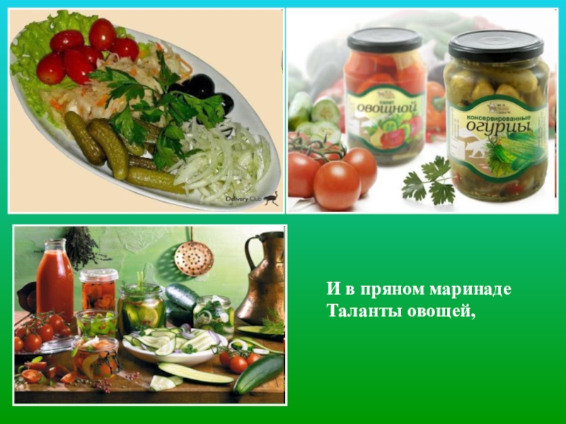 Слайд 19И в пряном маринаде Таланты овощей,