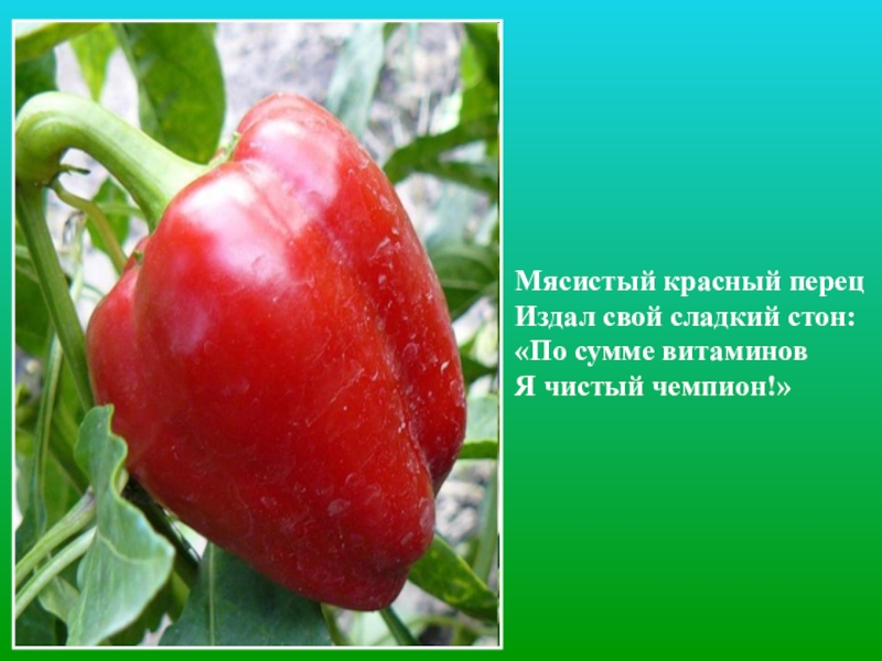 Слайд 13Мясистый красный перец Издал свой сладкий стон: «По сумме витаминов Я