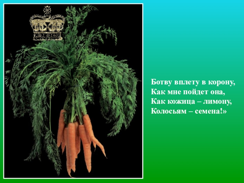 Слайд 9Ботву вплету в корону, Как мне пойдет она, Как кожица –