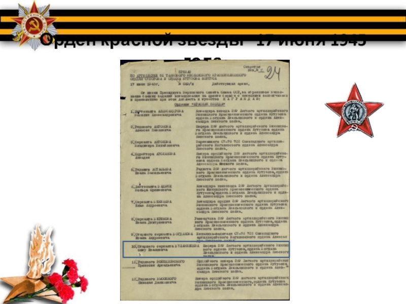 Слайд 6Орден красной звезды 17 июня 1945 года