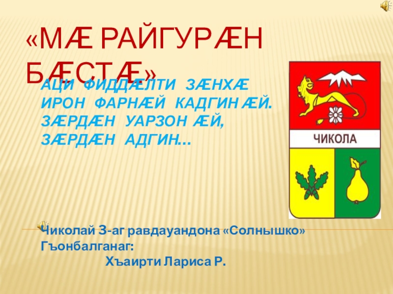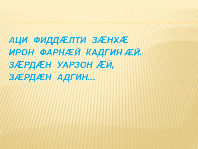 Дœ уидаг – нœ ивгъуыд, нœ абон, нœ фидœн.