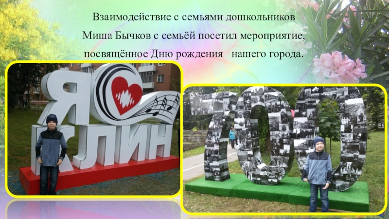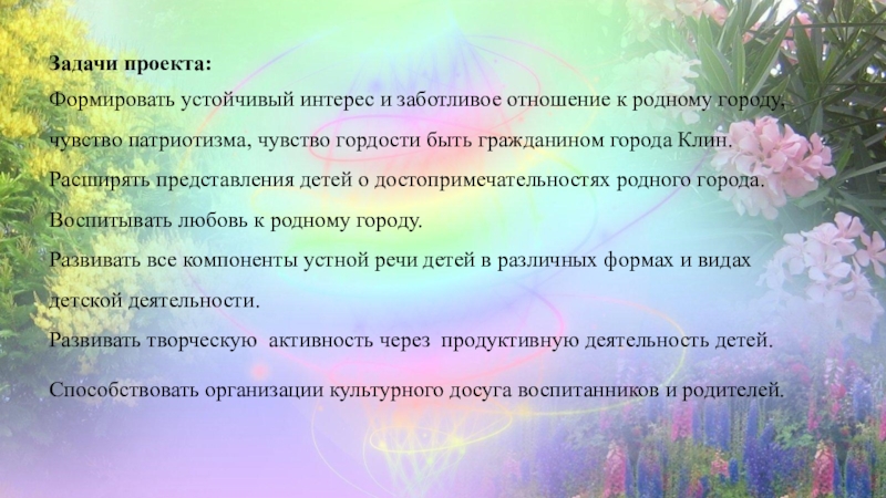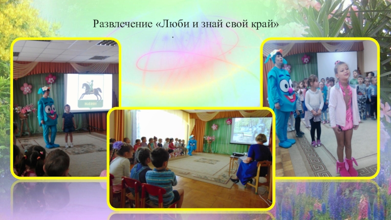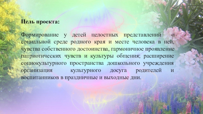 и месте человека в ней, чувства собственного достоинства, гармоничное проявление патриотических чувств и культуры общения; расширение социокультурного пространства дошкольного учреждения организация культурного досуга родителей и воспитанников в праздничные и выходные дни.
