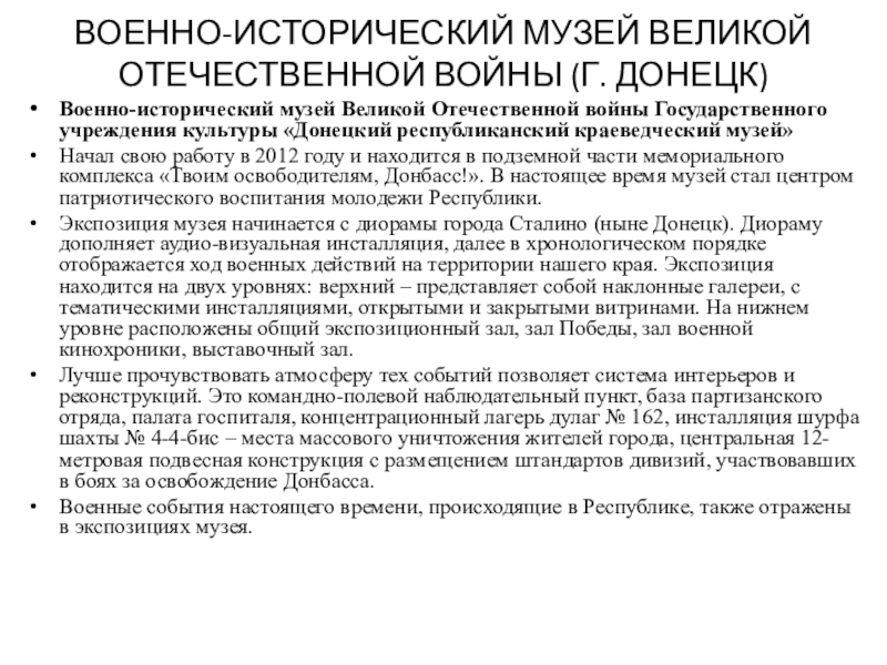 Слайд 11ВОЕННО-ИСТОРИЧЕСКИЙ МУЗЕЙ ВЕЛИКОЙ ОТЕЧЕСТВЕННОЙ ВОЙНЫ (Г. ДОНЕЦК)