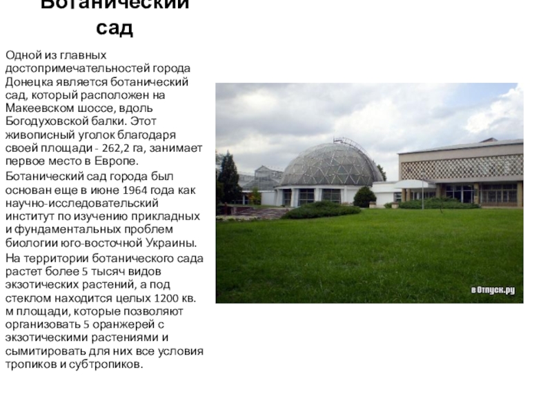 Одной из главных достопримечательностей города Донецка является ботанический сад, который