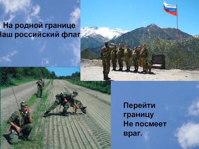 На родной границе Наш российский флаг, Перейти границу Не посмеет враг.