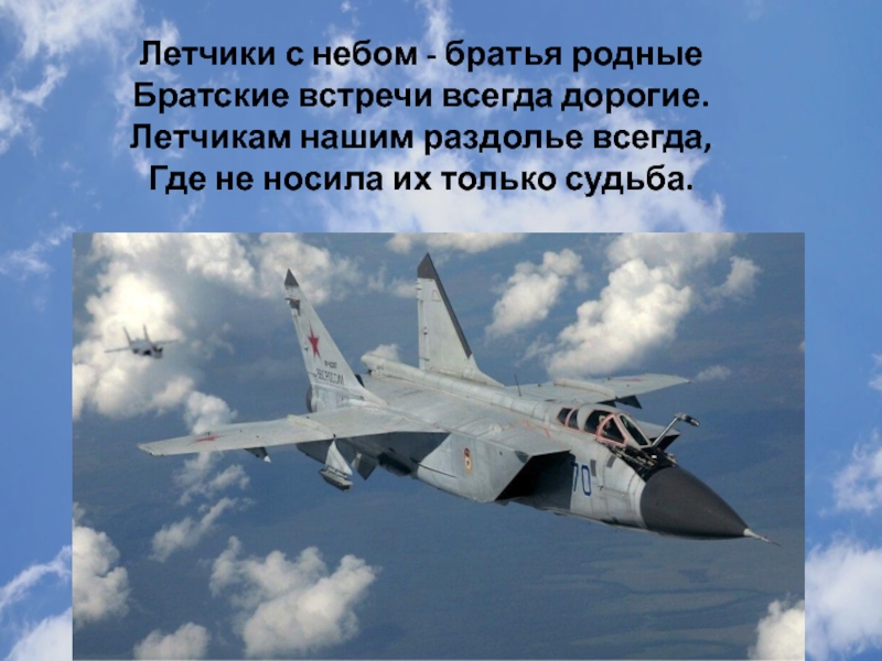 Слайд 9Летчики с небом - братья родные Братские встречи всегда дорогие. Летчикам нашим раздолье