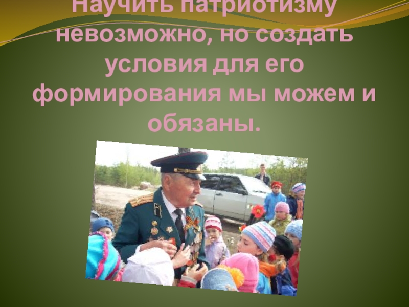 Слайд 11Научить патриотизму невозможно, но создать условия для его формирования мы можем