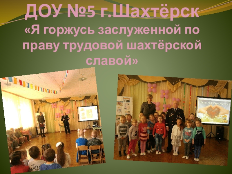 Слайд 10ДОУ №5 г.Шахтёрск «Я горжусь заслуженной по праву трудовой шахтёрской славой»
