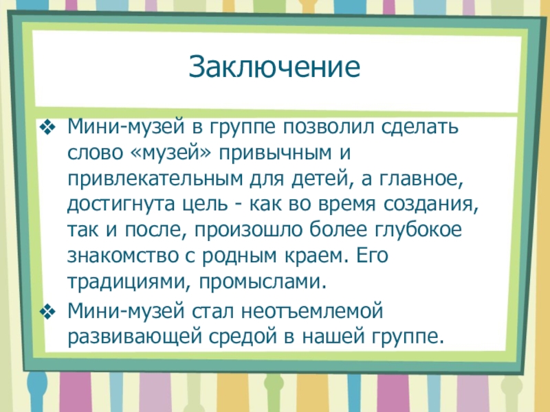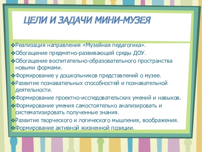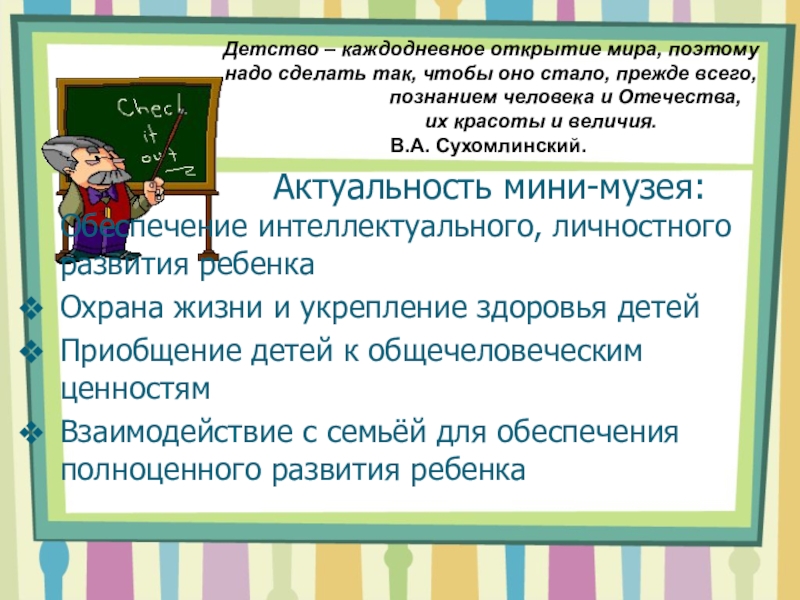 Актуальность мини-музея: Обеспечение интеллектуального, личностного развития ребенка