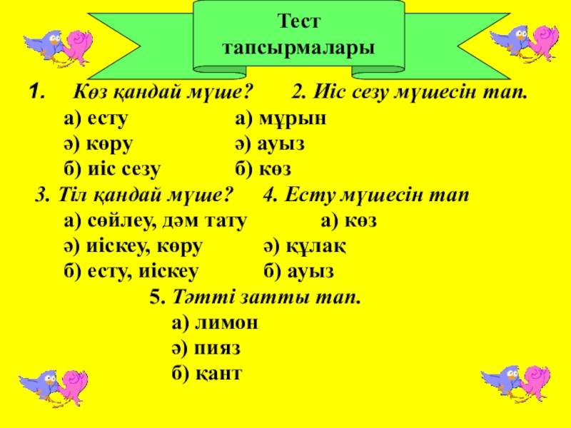 Тест тапсырмалары
