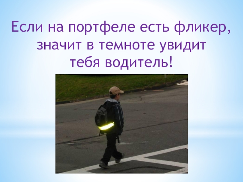 Если на портфеле есть фликер,значит в темноте увидиттебя водитель!