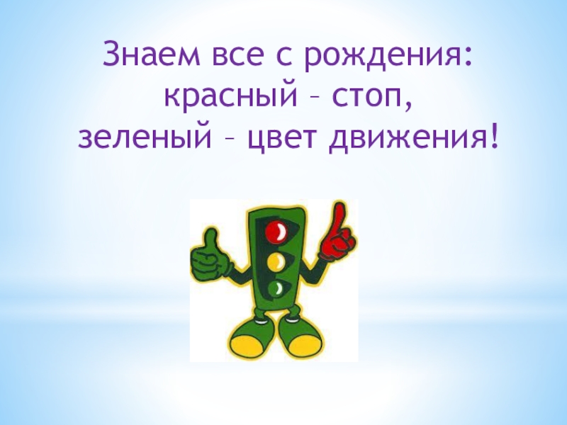 Знаем все с рождения:красный – стоп, зеленый – цвет движения!