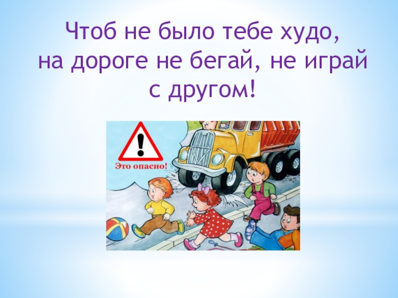 Чтоб не было тебе худо,на дороге не бегай, не играйс другом!