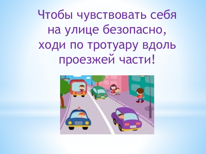 Чтобы чувствовать себя на улице безопасно,ходи по тротуару вдоль проезжей части!