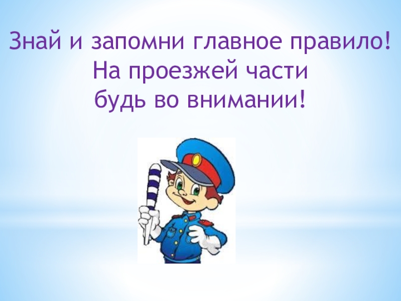 Знай и запомни главное правило!На проезжей части будь во внимании!