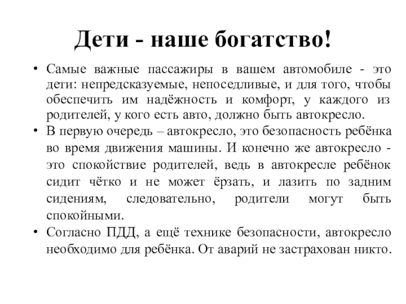 Дети - наше богатство!Самые важные пассажиры в вашем автомобиле - это дети: непредсказуемые, непоседливые, и для того,