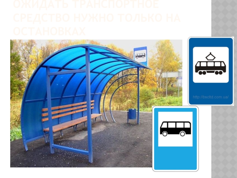 Слайд 11Ожидать транспортное средство нужно только на остановках