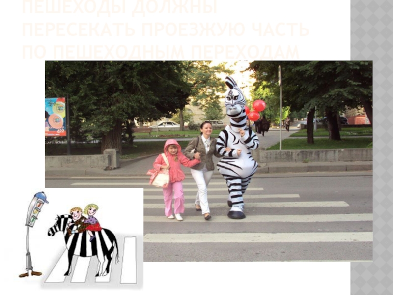Слайд 3Пешеходы должны пересекать проезжую часть по пешеходным переходам