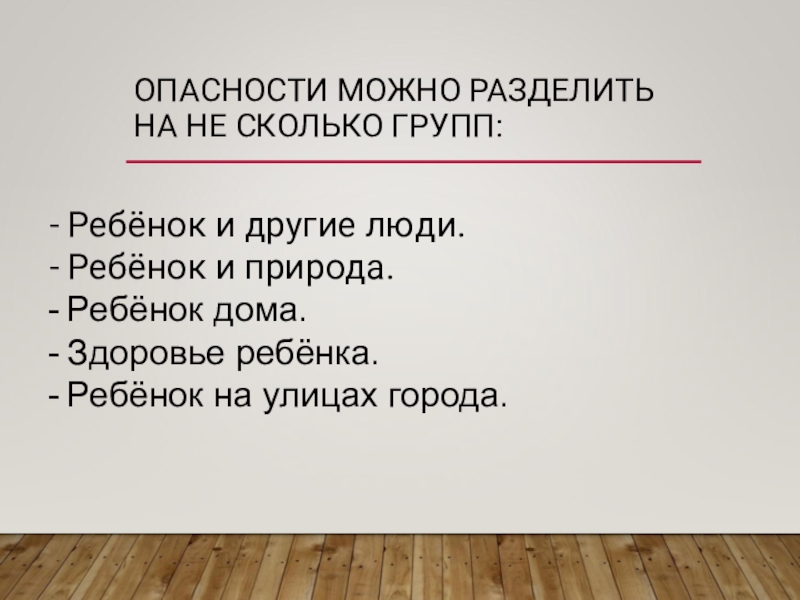 Слайд 4ОПАСНОСТИ МОЖНО РАЗДЕЛИТЬ НА НЕ СКОЛЬКО ГРУПП: