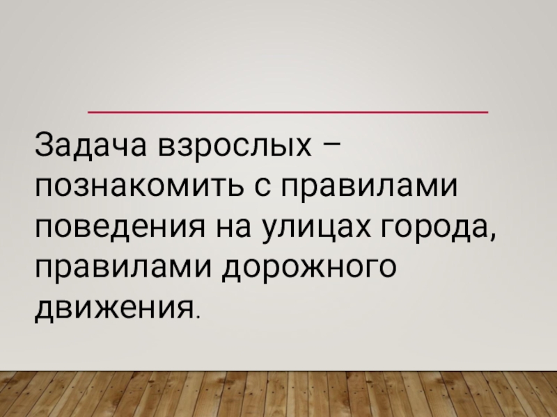 Слайд 13Задача взрослых – познакомить с правилами поведения на улицах города, правилами